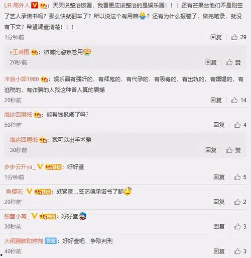 1. 加强监管:有网友表示,应该加强对娱乐圈的监管,严厉打击不良行为。